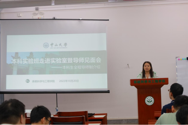 10月20日下午,我院组织2022级本科生走进实验室暨导师见面会,旨在让同学们了解学院的学科方向、研究领域和应用实践,为同学们搭建起结合科研兴趣双选匹配导师的平台。本次活动在广州校区南校园389栋414讲学厅举行,袁婷副书记主持。首先,班主任孙蕾副教授介绍学院本科生导师制,青年教师专职辅导员伍朝显助理教授介绍科研竞赛及大创项目。随后,学院空天智能无人系统研究团队、复杂网络与体系工程团队、复杂系统智能韧控团队三个科研团队的导师分别向同学们介绍研究的领域,团队研究生与师弟师妹开展朋辈交流,带领大家领略科技魅力。