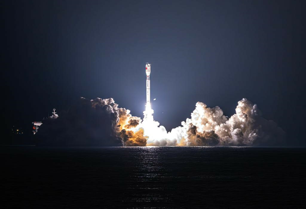 凌晨3时24分,捷龙三号点火升空,壮丽的一幕令人心潮澎湃。随着火箭的升空,一道亮丽的光芒划破夜空,照亮了广袤的海洋。火箭尾部的喷射火焰熊熊燃烧,将整个发射场映得通明如白昼。火箭如一颗闪亮的明星,冉冉升起,离地越来越远,直到最终融入星空中。
