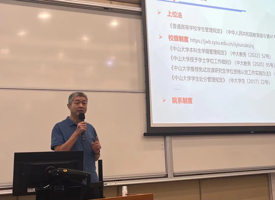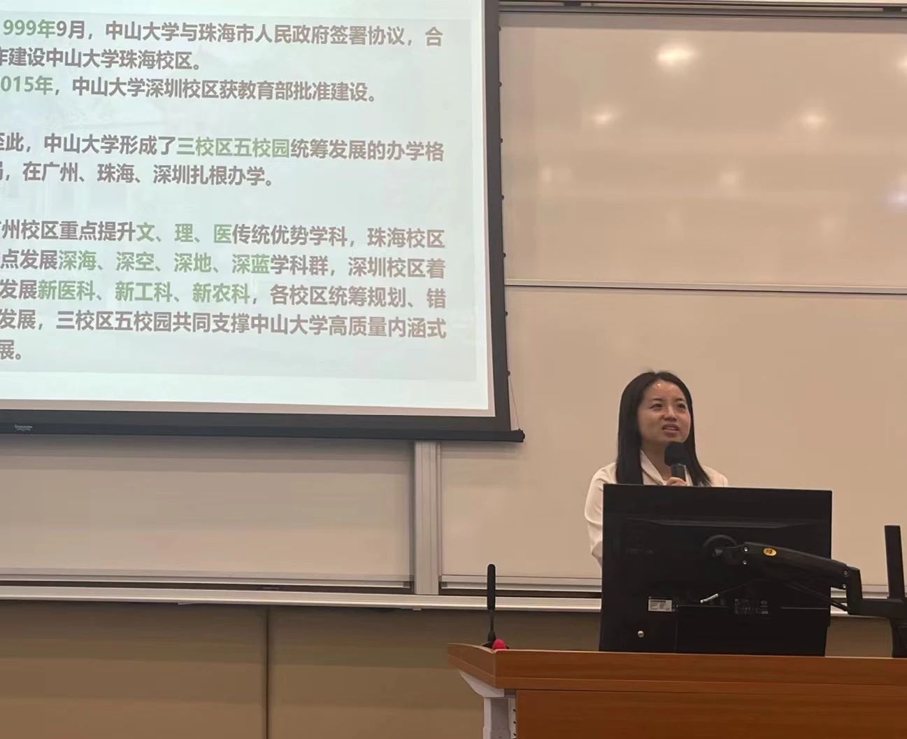 袁婷副书记从历史渊源、办学格局、家国情怀等方面介绍了中山大学的基本情况,建议同学们尽快融入新环境,要增强规则意识和纪律意识,争取实现人格健全、体魄健康、学识丰厚、社会责任等多方面的充分发展。