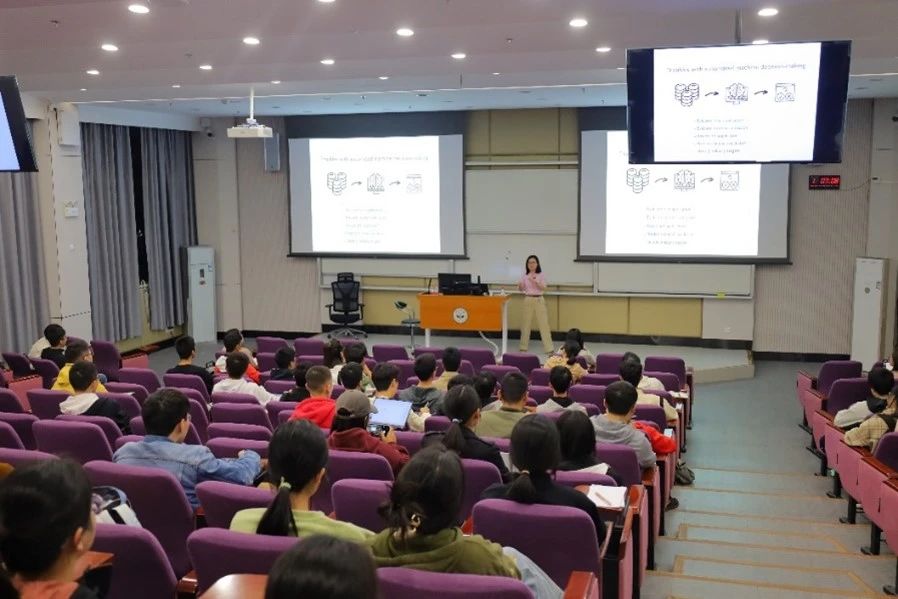 2023年11月17日晚,系统科学与工程前沿讲座在中山大学广州校区南校园389栋106课室举行,加拿大女王大学计算机学院副教授胡婷博士受邀为大家做学术讲座,304am永利孙蕾副教授、黄寒砚副教授,电子与通信工程学院戴志强副教授等老师与同学们参加讲座,本次讲座由黄寒砚副教授主持,学院研究生会学术交流部、中山大学机器人协会承办。