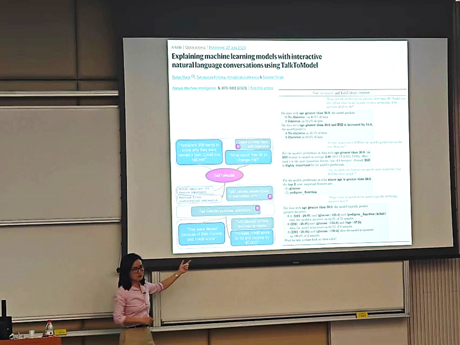 胡婷副教授表示,“演化算法和可解释性人工智能”是一个挑战与前景并存的研究方向,强调“解释过程”的逻辑性、准确性、充分性与针对性,指出人工智能应具有可交流性,从而更好地将其应用在司法、医疗等高要求领域中。