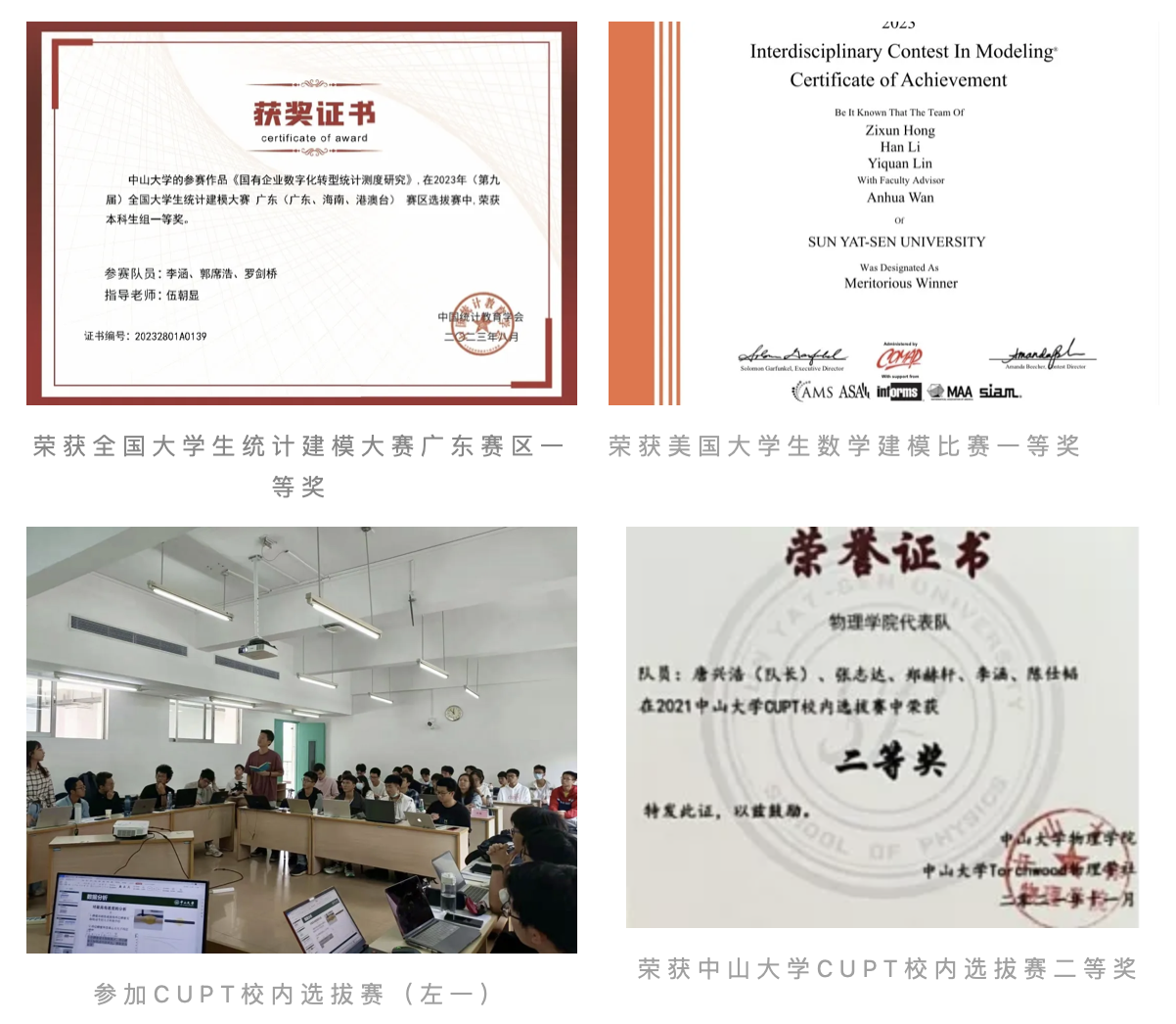 除了课堂上的学习,李涵也在课余时间中积极参加相关学科竞赛和大创项目,在多项竞赛中斩获佳绩。在一次次竞赛中,她收获的远不止是比赛经验和成绩,更是在比赛中挑战自我的勇气以及团队合作的意识。“建模比赛实际上是时间比较紧张且考验心理素质的比赛”,李涵提到,“比赛并不是单靠一个人的努力,而是队友之间协调合作、发挥各自长处的结果。”