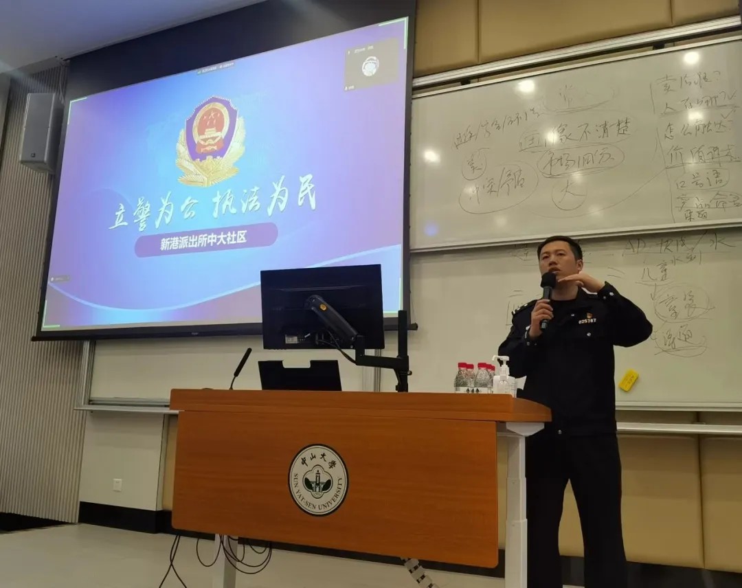 安全无小事,严把第一课。为进一步提升与筑牢学生的安全意识,增强自我保护的能力,3月5日下午,我院特邀请保卫处张水营老师、新港派出所中大社区民警倪明飞警官,在南校园389栋106讲学厅开展了一场别开生面的安全教育专题培训,由辅导员郑嘉茵老师对《中山大学学生宿舍管理办法》和《中山大学学生处分管理规定》进行宣讲解读,加强学生行为规范教育。宣讲会由304am永利党委副书记袁婷主持,学院学生与实验室管理的教职员工参加了会议。