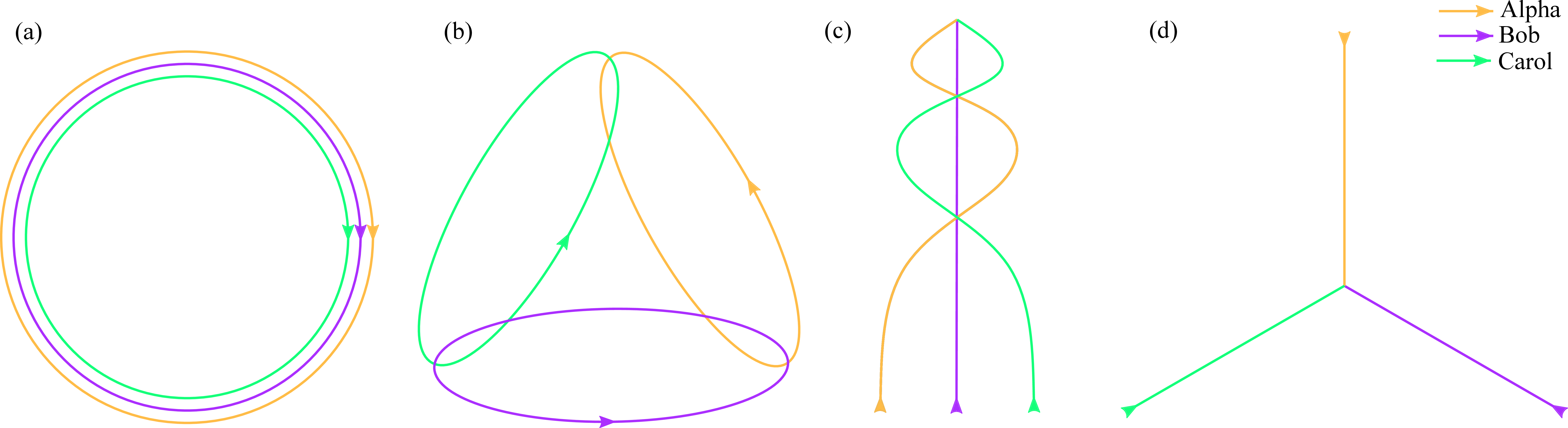 如图3所示,在 S3E 数据集中,团队设计了遵循四种不同的机器人内/机器人间规范的闭环轨迹。 第一范式是 C-SLAM 应用中的典型情况,即机器人编队同时绕目标运行,主要用于对目标进行稠密三维重建。第二范式模拟区域搜索和救援任务,每个机器人在不同的区域搜索,并在交互过程中与其他机器人共享信息。这种情况要求 C-SLAM 算法在小的公共区域内具有可靠的机器人内部闭环能力和高效的机器人之间闭环能力。第三范式集中于仅具有机器人间环路闭合的场景,所有的机器人都从不同的地方开始,并在路径中的一些会合点前进,最后在同一个地方相遇。第四范式中,机器人从不同的地方开始,终点是同一个地点,这种情况在 C-SLAM 中非常困难,因为所有的机器人只在终点相遇,几乎没有为回环提供任何信息。