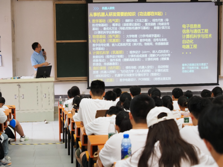 在本次科普课堂上,中山大学机器人协会指导老师侯燕青副教授结合自己的研究,向同学们介绍了机器人软硬件集成的发展趋势以及当前的前沿技术,包括但不限于人工智能、机器学习、计算机视觉和传感器技术等。侯教授的讲解深入浅出,不仅让同学们对机器人技术有了更深刻的理解,也激发了他们对机器人制造的热情和兴趣。