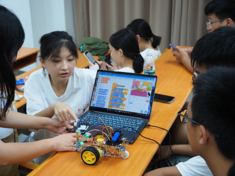 在理论学习之后,机器人协会为同学们准备了智能小车组装套件,包括电机、传感器、控制板等基础组件。在老师和志愿者们的指导下,同学们动手组装了智能小车,体验了从零件到成品的创造过程。