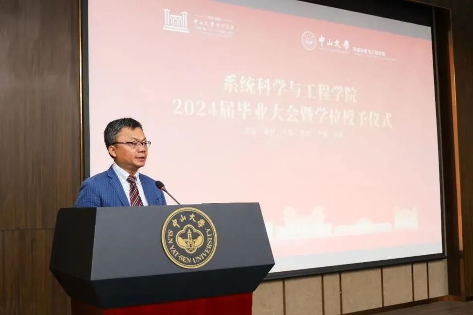 陈洪波院长对2024届毕业生表示祝贺,他指出,在学院建设历史中,全体师生既是见证者,也是参与者。他对全体毕业生提出三点叮嘱,一是不管何时何地,要永怀家国情怀,永保赤子初心;二是坚守“系统魂”,践行知行合一,用科学指导实践,做博识多通的时代新人;三是要全身心投入,热爱生活工作,心诚志坚,克服困难。世纪中大,他希望毕业生常回母校看看。
