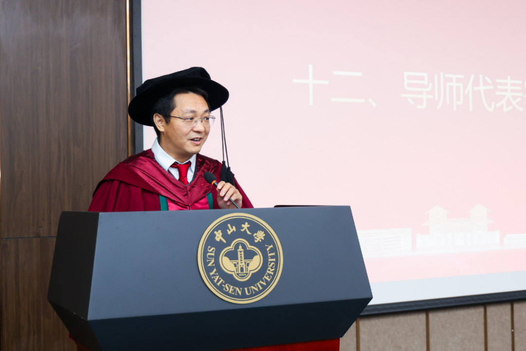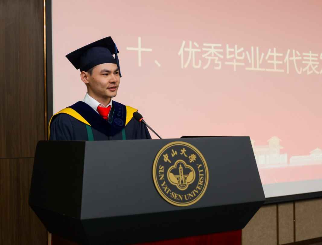 教师代表肖绍球副院长表示,在座每一位毕业生都付出了艰辛努力,也取得了累累硕果,陪同学院成长。作为系统院教师,他深感责任重大、使命光荣,同时指出系统学子遇到了美好时代、获得机遇,他希望大家秉承中大精神,奋进新征程,“惟愿诸君将振兴中华之责任,置之于自身之肩上”。
