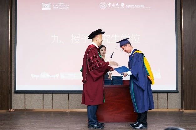 陈洪波院长宣读学校关于授予学士、硕士、博士学位的决定,并为登台的系统学子逐一拨穗、颁授学位。毕业生们走上舞台接过证书,象征着在学校学院中求学求索的旅程告一段落,新的征程即将展开。
