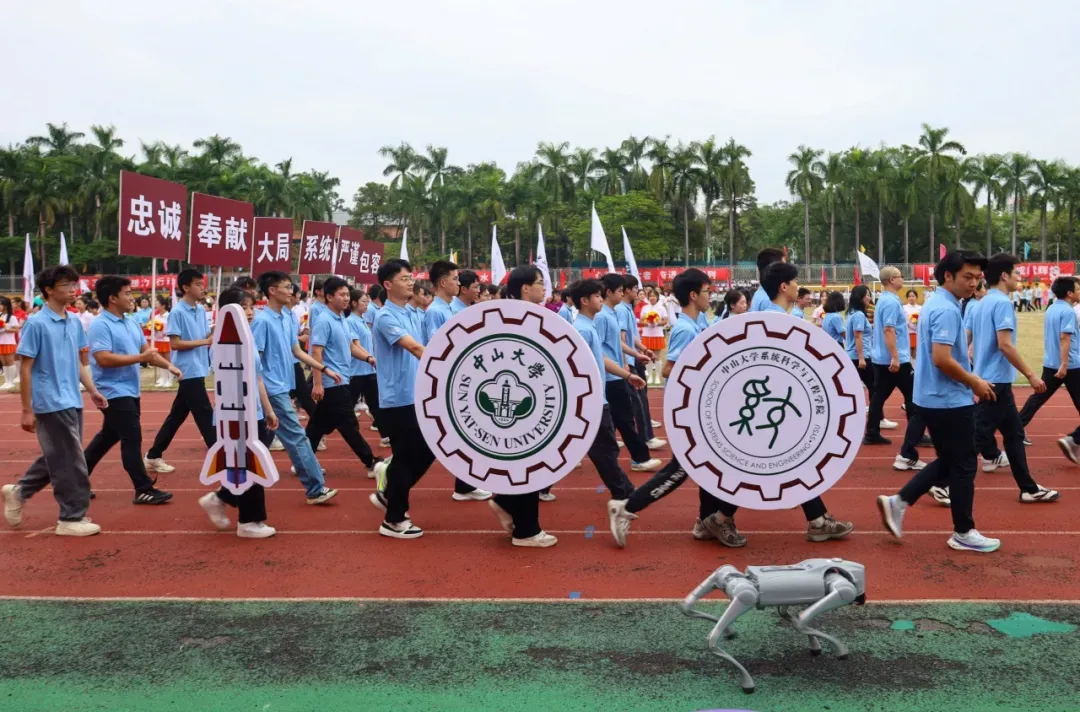 今年有三名特殊的方阵队员,他们是来自学院机器人协会的机器狗。它们迈着铿锵的步伐,威风凛凛,生气勃勃。机器狗的出现不仅成为了校运会开幕式方阵中的亮眼风景线,也代表着科技发展为系统院方阵注入新的创新活力。