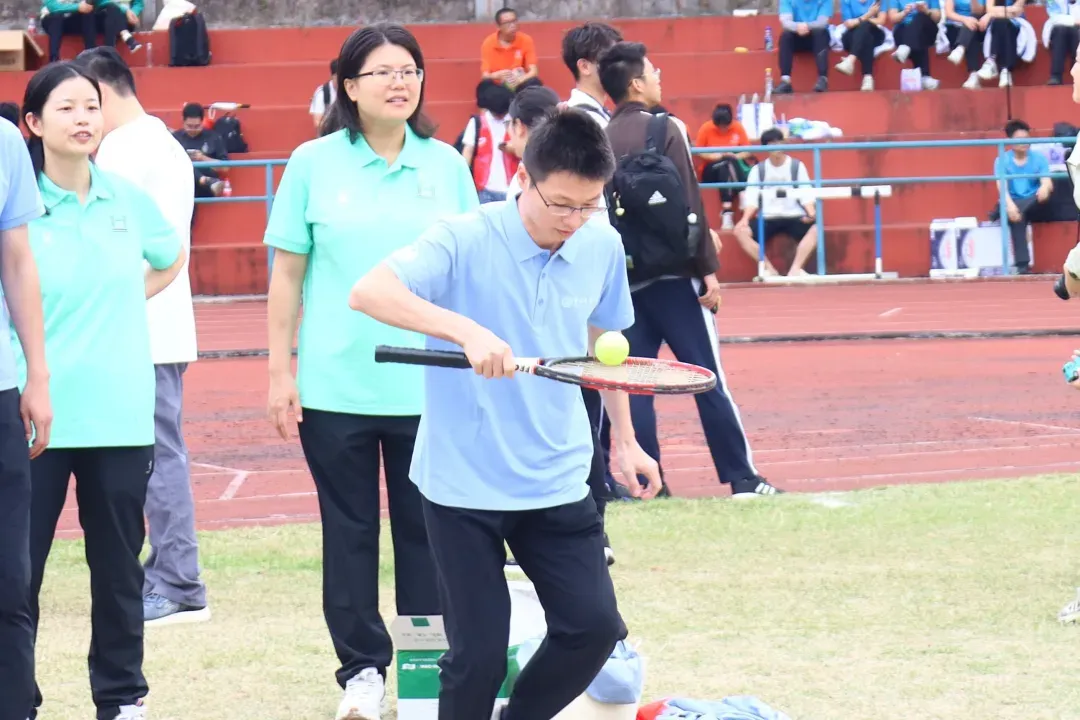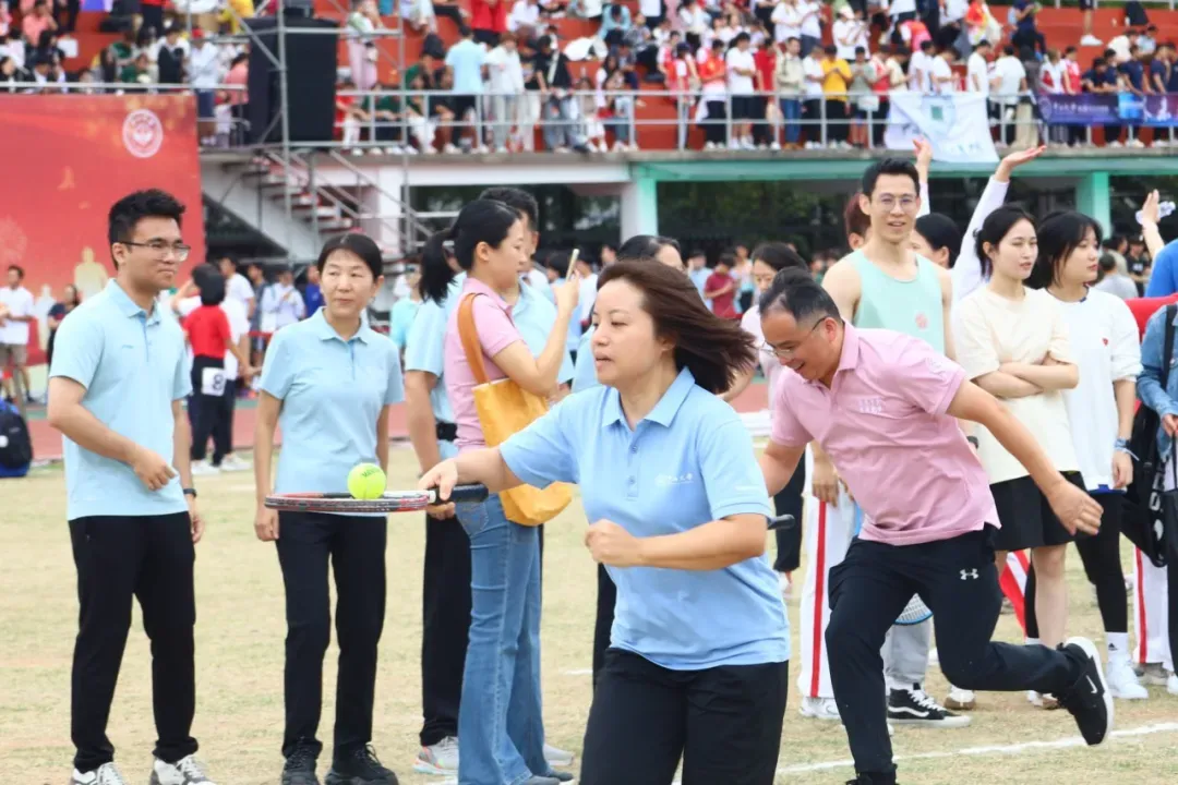 校运会不仅是个人能力的展现,更是团队合作精神的体现。教职工托球接力比赛中,一个小小的拍子,传递的不仅是平稳,更是信任与责任。老师们在接力比赛中全神贯注、争分夺秒,尽自己的努力争取比赛优势。