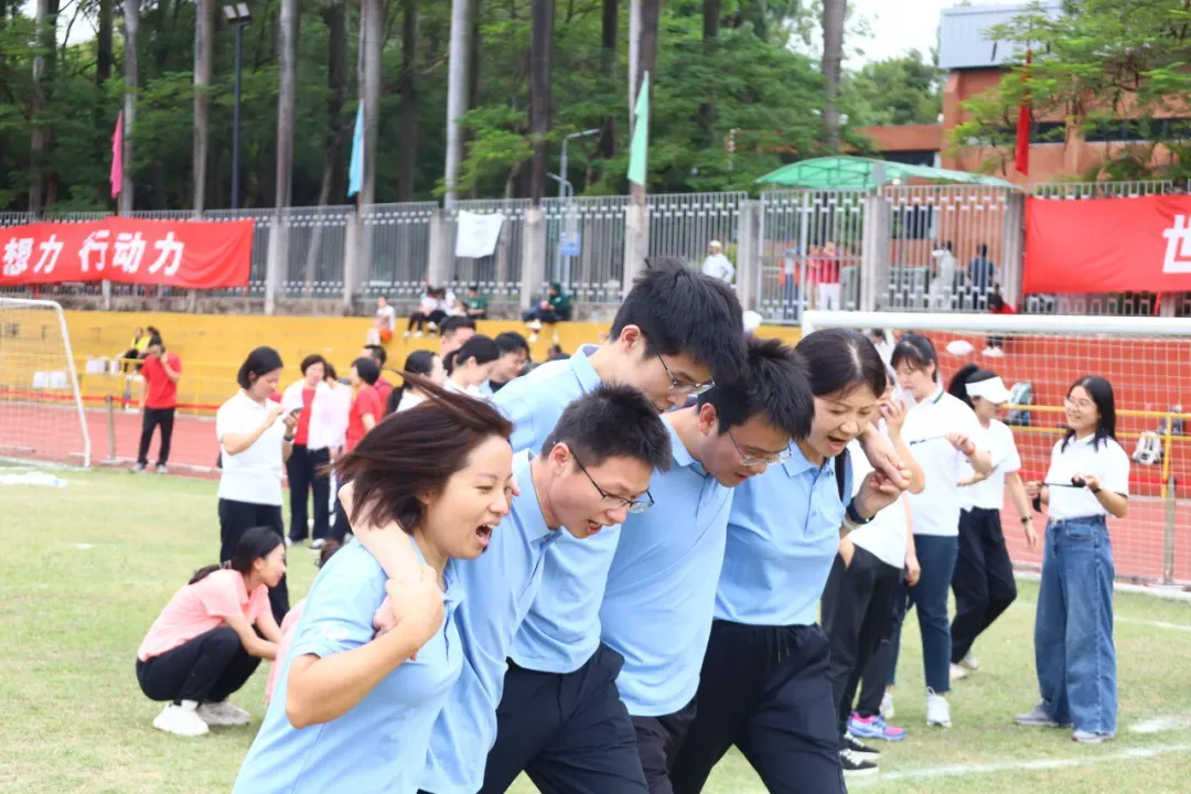 在教职工五人六足比赛前,老师们积极备赛演练,相互鼓励,共同进步,用实际行动诠释了“团结就是力量”的真谛。