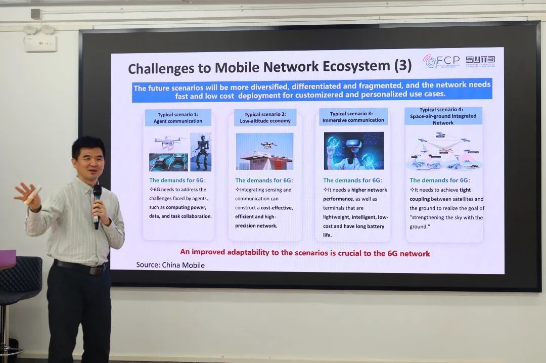 讲座伊始,Tony Q.S. Quek院士从6G的应用场景和部署需求切入,为大家系统阐述了6G技术的必要性和广阔发展前景。他指出,随着时代发展,未来的通信场景将呈现多样化、差异化、碎片化的显著特征,网络需求也将更加多元,迫切需要快速、低成本的部署方案以满足定制化和个性化需求。通过对通信、AI、通感融合以及运营商需求等多维度分析,Tony Q.S. Quek院士深入解读了6G技术的核心价值。