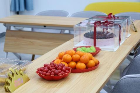 学院为教职工们精心准备了美味的蛋糕和新鲜的水果,蛋糕上精美的装饰和甜蜜的奶油,象征着学院对老师们满满的祝福。此外,每位老师还收到了一份特别的礼物——以学院风貌为背景暖心定制的专属相框,里面装着老师们日常工作和生活的照片,记录着他们最真实、最美好的瞬间。老师们围坐在一起,热闹地讨论着照片上的故事,分享着彼此的快乐与回忆,在这温馨欢乐的氛围中,大家脸上都洋溢着幸福的笑容,仿佛整个空间都被这份温暖所包围。