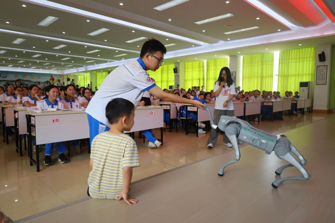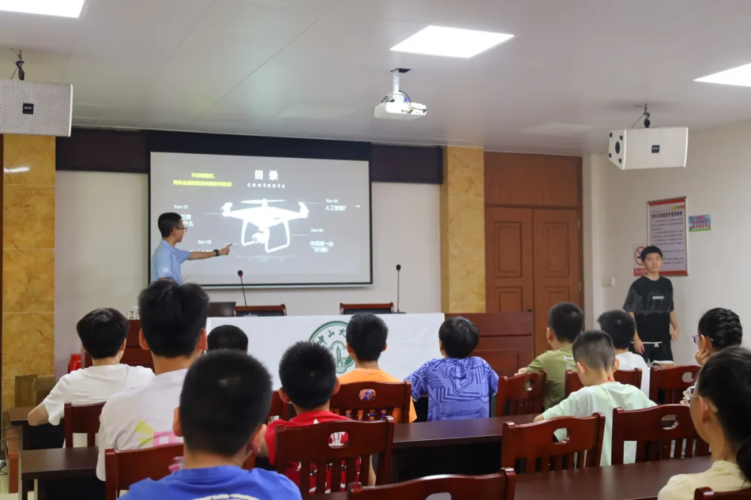 7月6日至7日,实践团分别走进高州市青少年活动中心和高州中学,为近500名中小学生带来了一系列生动有趣的科技课程。课程包括“无处不在的神奇系统”“揭秘飞机飞天魔法”“脑机接口探奇”和“红石密码锁大拆解”等,通过理论讲解与实践操作相结合的方式,激发学生对科技的兴趣。如在“脑机接口探奇”课堂上,学生们分组体验了用脑电波操控机器狗的神奇技术;而在“揭秘飞机飞天魔法”课程中,学生们亲手组装橡皮筋动力航模飞机,感受航空科学的魅力。实践团成员以扎实的专业知识和生动的互动形式,将深奥的科学原理转化为触手可及的体验,赢得了学生们的热烈反响。