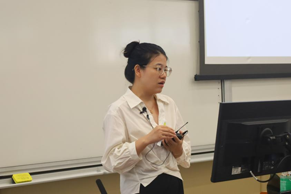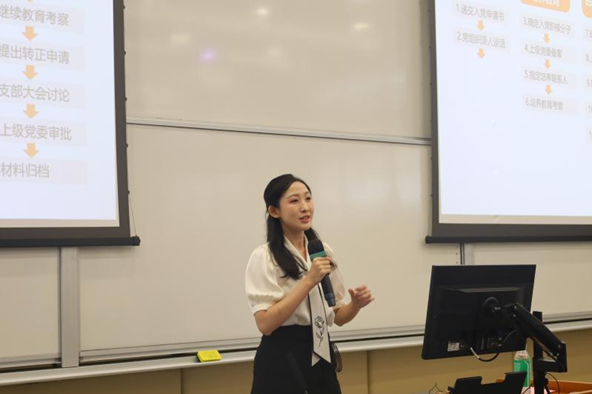 团委书记、辅导员郑嘉茵老师介绍了《中山大学学生宿舍管理办法》《中山大学学生处分管理规定》等与学生日常管理重要文件,详细讲解了学生奖助政策、学生入团及入党流程、第二课堂活动与校院二级学生组织情况。郑老师鼓励同学们积极向党组织靠拢,学有余力可多参与党团班活动,提升综合素质与能力。