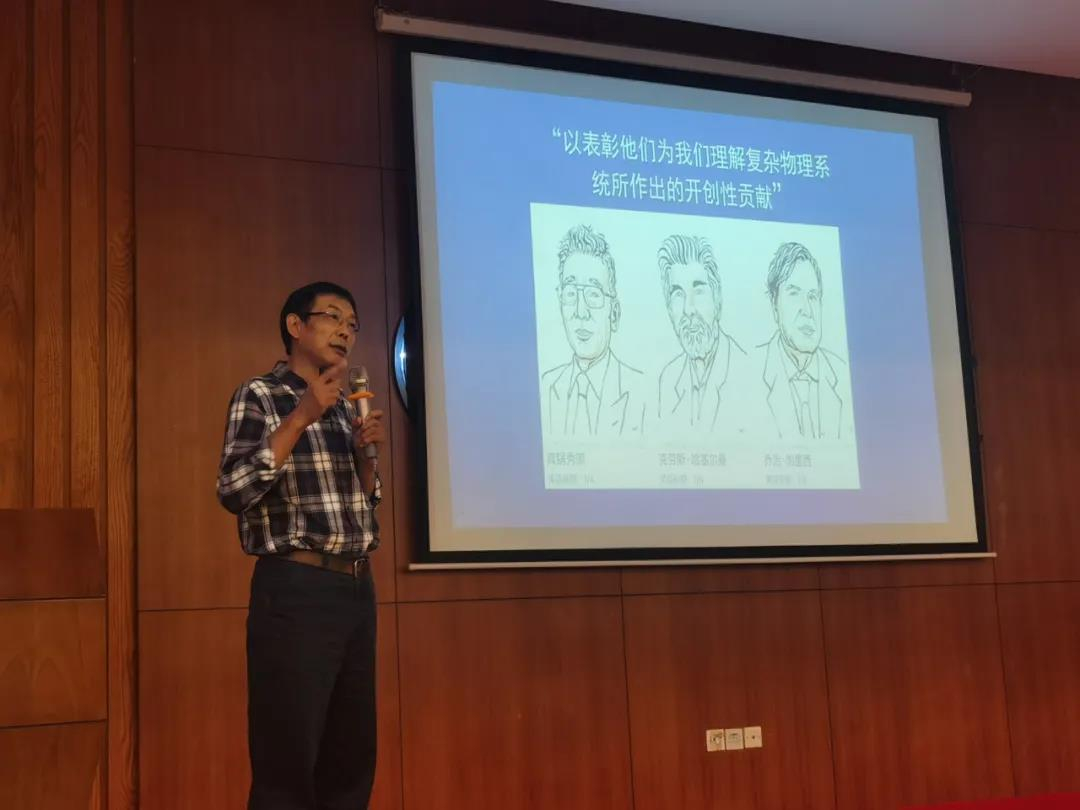 狄增如教授以 “探索复杂性——系统科学”为主题作了学术报告。首先,狄教授介绍了今年三位诺贝尔奖获得者的复杂科学研究方向,提出了21世纪是复杂系统世纪的观点。随后,狄教授介绍了系统科学的基本学科内涵及其重要性。他指出,在20世纪科学发展的基础上,超越还原论,探索复杂系统涌现性,发展系统科学,已成为21世纪科学探索的重要领域,当今科学技术的发展前沿都广泛进入到了研究复杂性调控复杂系统的时代,不管是哪个学科,具有挑战性的前沿学术问题,一定是具有系统性和复杂性的问题。在这一方向上的科学发展表明,纷繁多样的复杂现象背后,可能存在着简单的、普适的规律。探索各类系统的结构、环境与功能的普适关系以及演化与调控的一般规律,并在系统范式的基础上形成科学认识,是系统科学研究的重要任务。狄教授在介绍系统科学基本科学内涵的基础上,结合心脏动力学等相关研究成果,介绍系统科学研究的基本线路,展现各领域复杂现象背后的普适性规律。最后他强调,系统科学是时代发展下应运而生的一门科学,也是当下极其重要的一门科学,有着光明的发展前景。