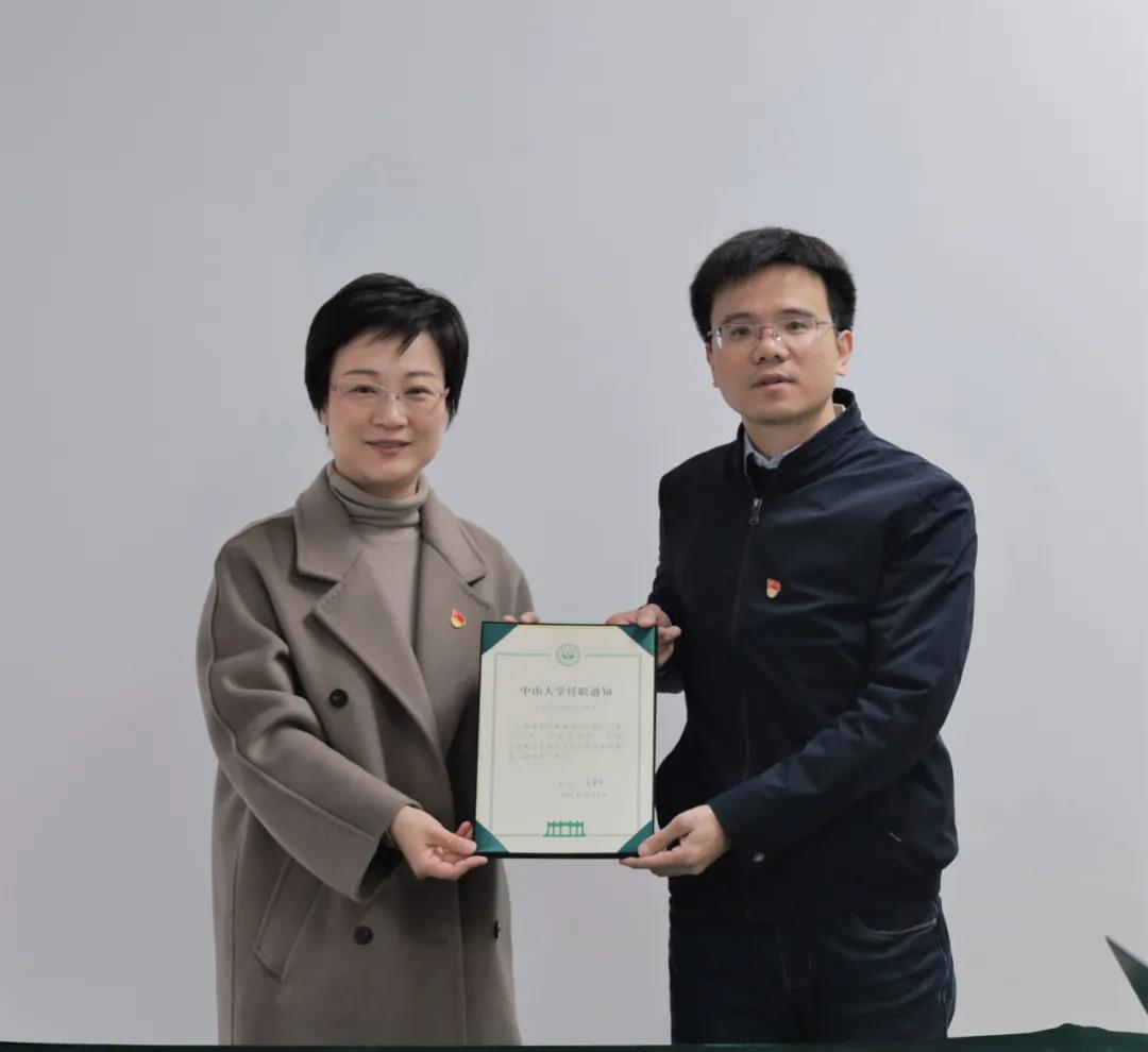 图3 杨晓萌部长为庄学彬副院长颁发任命书