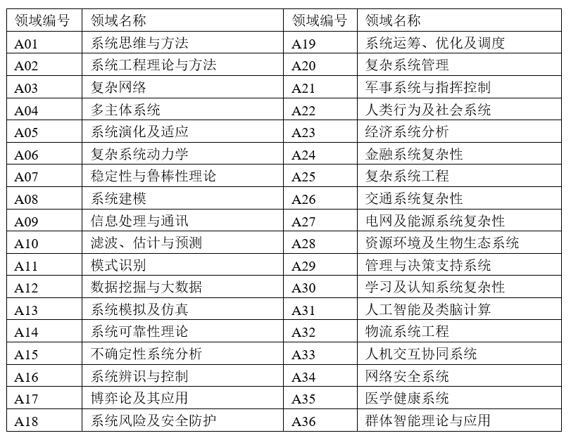 第六届中国系统科学大会(CSSC2022)投稿领域: