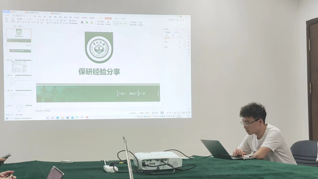 解程宇同学先向大家介绍了保研流程。他依次向同学们介绍了“夏令营”、“预报名”和“推荐免试” 的途径,列举出三者的区别、优势和关键的时间节点。在资料准备方面,解程宇同学特别提醒学弟学妹们除了将个人简历、竞赛成绩等相关资料准备充分外,更要做好心理准备。相较于本科生阶段按部就班地学习,研究生重点在科研,建议同学们在本科阶段尽早进入实验室体验研究生的学习与生活。他以自己保研本院的选择为例,向同学们展现了本院理想的师生比例以及本科与研究生无缝衔接贯通培养等多项优势。接着,解程宇同学还推荐了多个实时收录保研资讯的公众号,为学弟学妹们选择心仪的院校提供了途径。