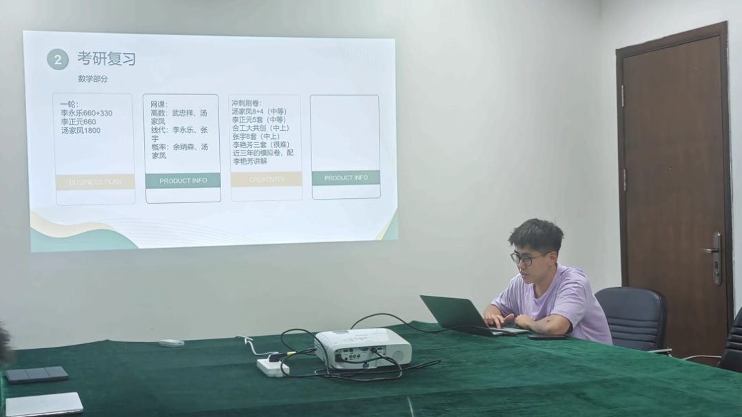 谭苟同学向大家介绍了考研科目及其分数分配,并梳理了考研时间线,介绍了专硕、学硕、国家线、校线、院线等相关知识。谈及如何复习考研科目时,他向学弟学妹们分享了自己总结的备考技巧,并推荐了各个科目的复习资料。谭苟同学认为每位老师讲课都有自己的知识体系,同学们复习时不必观看多位老师的网课,而应该选择一位老师的网课认真学习。专业课方面,他建议同学们搜索目标院校的招生官网查看招生简章,获取最准确的专业课信息并安排好复习计划。对于去年考研外院出现的高分落榜现象,谭苟同学提醒大家要谨慎填报志愿,考研外院如果把握不大时尽量选择报考本院。最后,他鼓励学弟学妹们制定好学习计划,并且相信自己!