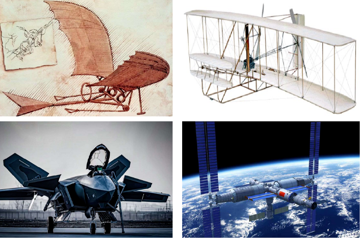 图3-4:歼20战斗机  等待实验舱与航天员的空间站